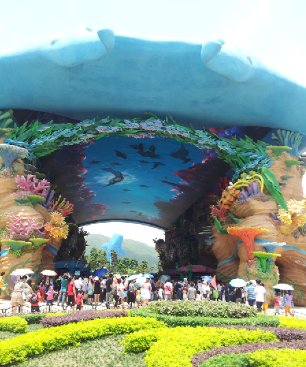 我們先來且不說國內(nèi)類似于香港迪士尼、方特這樣的大IP制作,就拿廣東珠海的一個長隆海洋王國來作為示例。長隆海洋王國主題樂園首先確定了游樂場設(shè)計以海洋為題,那么在他們的游樂場設(shè)計中門頭挑選出一個可愛又據(jù)代表性的大型鰩魚作為入口建筑,入口又是一條長長的絢爛海底通道,這樣的一種代表性造型建筑容易讓人不自覺地產(chǎn)生內(nèi)容衍生感,這種濃厚的海洋氣勢使得游客在還未拿到票時就能夠被深深吸引。游樂場設(shè)計中標(biāo)識的作用就是緊密與導(dǎo)向系統(tǒng)做到布局合理性,當(dāng)然除了向?qū)ё饔靡部梢跃C合整個游樂設(shè)計的設(shè)計風(fēng)格來講進行道路標(biāo)識。美國瓜達盧佩河岸大道游樂場的游樂場設(shè)計標(biāo)識與游樂場設(shè)計導(dǎo)向系統(tǒng)設(shè)計就非常成功。游樂場設(shè)計師借用地面標(biāo)志來引導(dǎo)游客的行動路線,用帶有箭頭的鑄銅導(dǎo)向“大獎?wù)?rdquo;和鑲嵌到大理石路面用由馬賽克和鑄銅文字組成的指南針來幫助游客找尋方向。