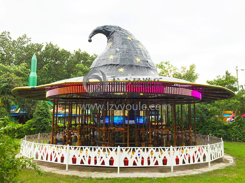 “飛天魔帽”旋轉(zhuǎn)木馬也是由許昌龍之盈游樂設(shè)備有限公司研發(fā)制作,該產(chǎn)品結(jié)合著名電影《哈利·波特》元素,設(shè)備整體是一個巨型的巫師帽,搭配中央顯示屏,結(jié)合精心華麗的天幕與地景,以及奇幻的煙霧、泡泡等特效,提供白天到黑夜的神奇魔法飛行體驗(yàn)。