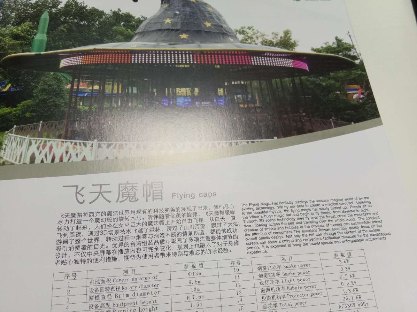 如下圖飛天魔帽也是我們龍之盈游樂(lè)設(shè)備有限公司生產(chǎn)出來(lái)的兒童游樂(lè)設(shè)備,聽(tīng)伴隨著優(yōu)美的旋律,飛天魔帽緩緩的轉(zhuǎn)動(dòng)了起來(lái),人們坐在女巫巨大的魔法帽上開(kāi)始自有的飛翔,從白天一直飛到黑夜,通過(guò)3D場(chǎng)景技術(shù)飛越過(guò)了森林,跨過(guò)了山川河流,飄過(guò)了大海游遍了整個(gè)世界,轉(zhuǎn)動(dòng)過(guò)程中煙霧與泡泡不斷的情景創(chuàng)造,都能夠成功吸引消費(fèi)者的目光。