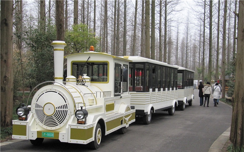 無軌觀光小火車常規(guī)的是電瓶的,充一次電可以續(xù)航200公里,爬坡的幅度大概是10到15度。