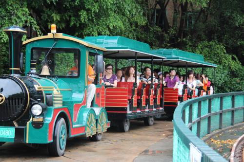 無軌小火車正好彌補了軌道小火車這一成本高的缺陷,它的動力一般采用電力和燃油,只要路面平整就能跑,不用像軌道小火車那樣前期需要先鋪設軌道,大大的降低了成本!