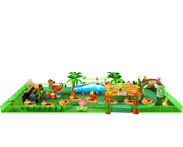 與花果山漂流的西游記主題截然不同,叢林探險整體風格采用叢林主題,景觀裝飾造型絢麗多彩、栩栩如生。這里有威風凜凜的霸王龍,有形態憨厚的小恐龍和七彩恐龍蛋。有神秘色彩、時空隧道般的叢林洞,有枝繁葉茂的椰子樹,色彩迷人的小蘑菇,活靈活現的獅子和小松鼠,標志的荷蘭風車,有頑皮可愛的小猴子。