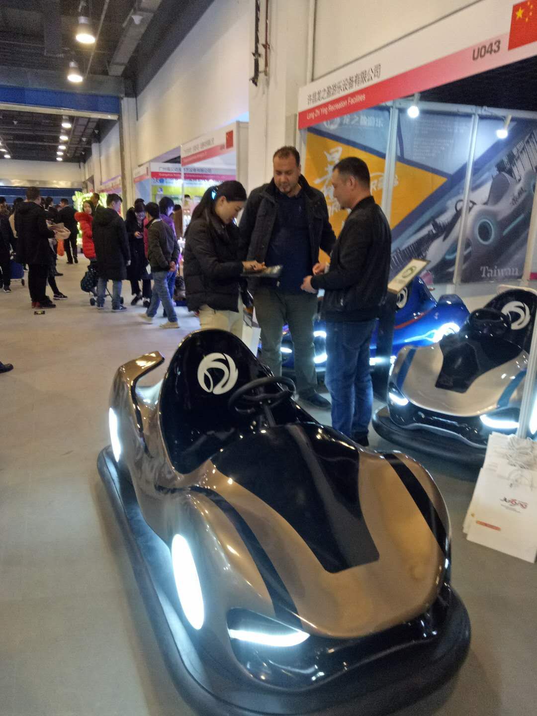 在*一天的展會結束后,我對龍之盈游樂設備有限公司的經理進行了訪問。經理對我簡單的介紹了一下這款產品。這款碰碰車叫“暴風漂移”,是他們公司自主研發的一款產品,是碰碰車和漂移車的結合體。在經理的言談舉止之間看得出來對他們這款產品的自豪與驕傲。龍之盈的經理還告訴我,今天他們已經收了好幾個訂單,有一部分人還說明天再來下訂單,可見這次盛會帶給他們的收益不小。